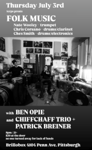 JULY 3RD BEN OPIE/CHIFFCHAFF TRIO/PATRICK BREINER 8PM/$20!!! Event Details Date: July 3, 2025 8:00 pm – 11:00 pm