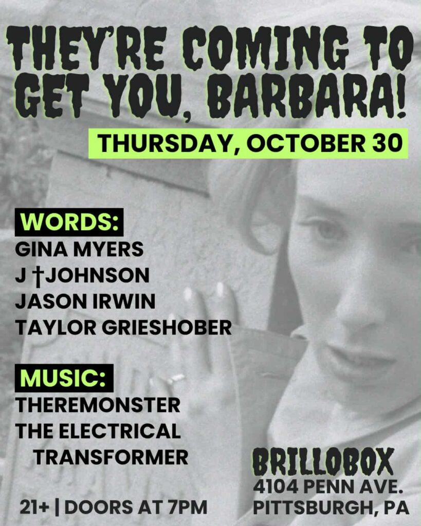 OCTOBER 30TH “THEY ARE COMING TO GET YOU BARBARA” 7PM/FREE Event Details Date: October 30, 2025 7:00 pm – 11:55 pm