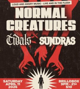 SATURDAY APRIL 11TH 9PM/$10 NORMAL CREATURES/ TIDALS/ SUNDRA Event Details Date: April 11, 2026 9:00 pm – 12, 2026 2:00 am Screenshot